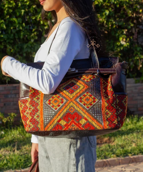 Discover the perfect marriage of rugged durability and timeless luxury with our Artisan Brown Leather Handbag. Designed for the discerning woman, this Luxe Red Kilim Shoulder Bag is a true statement of individual style and heritage.