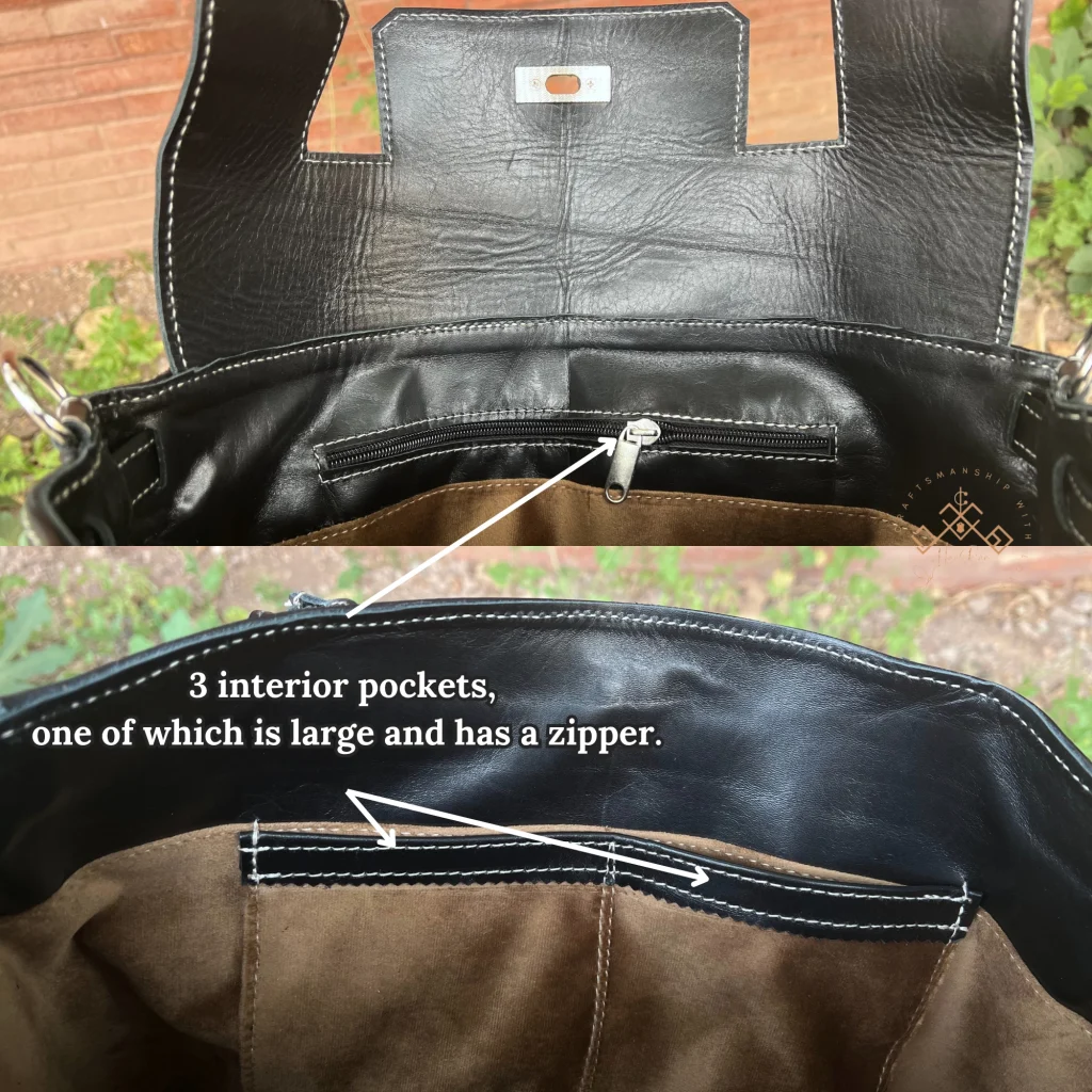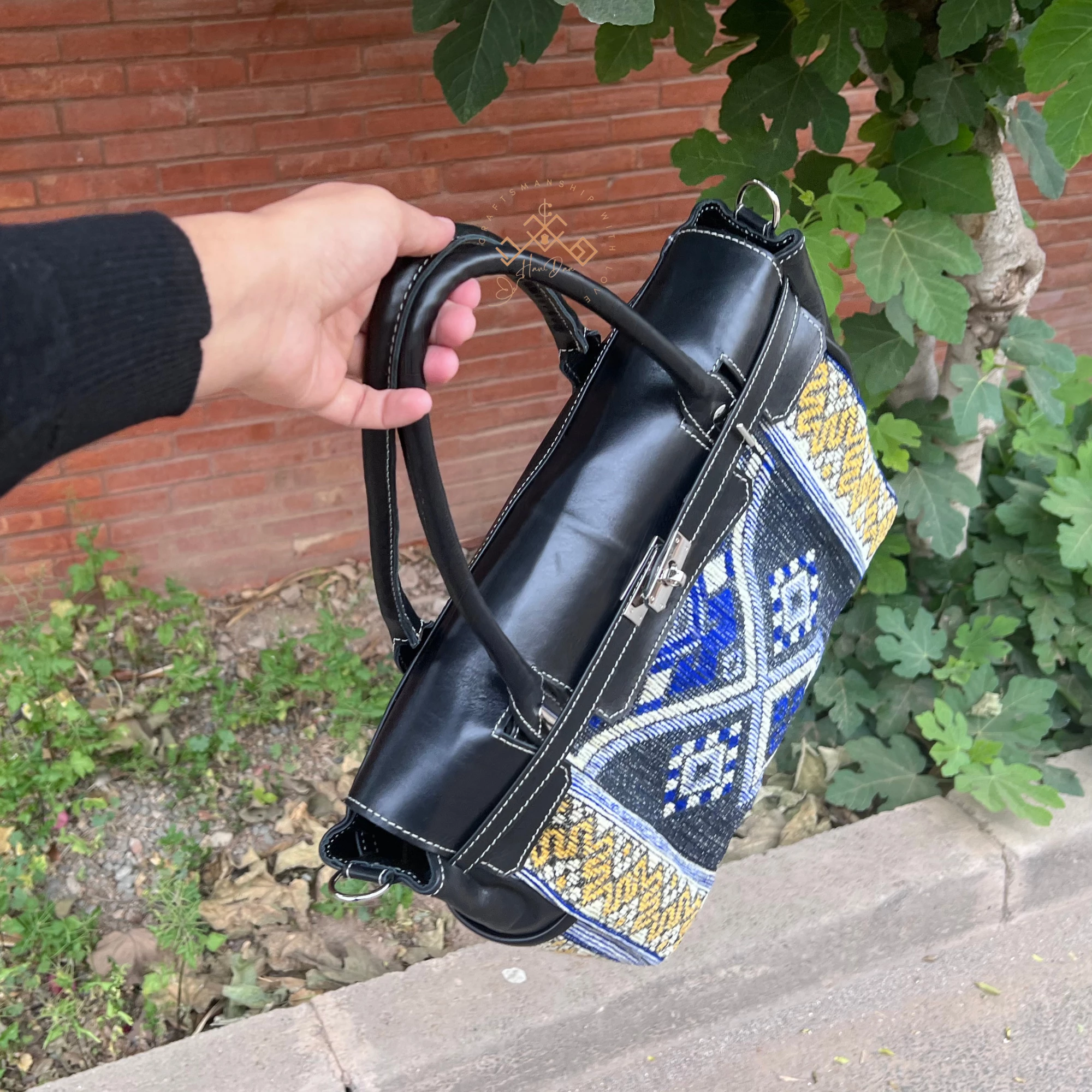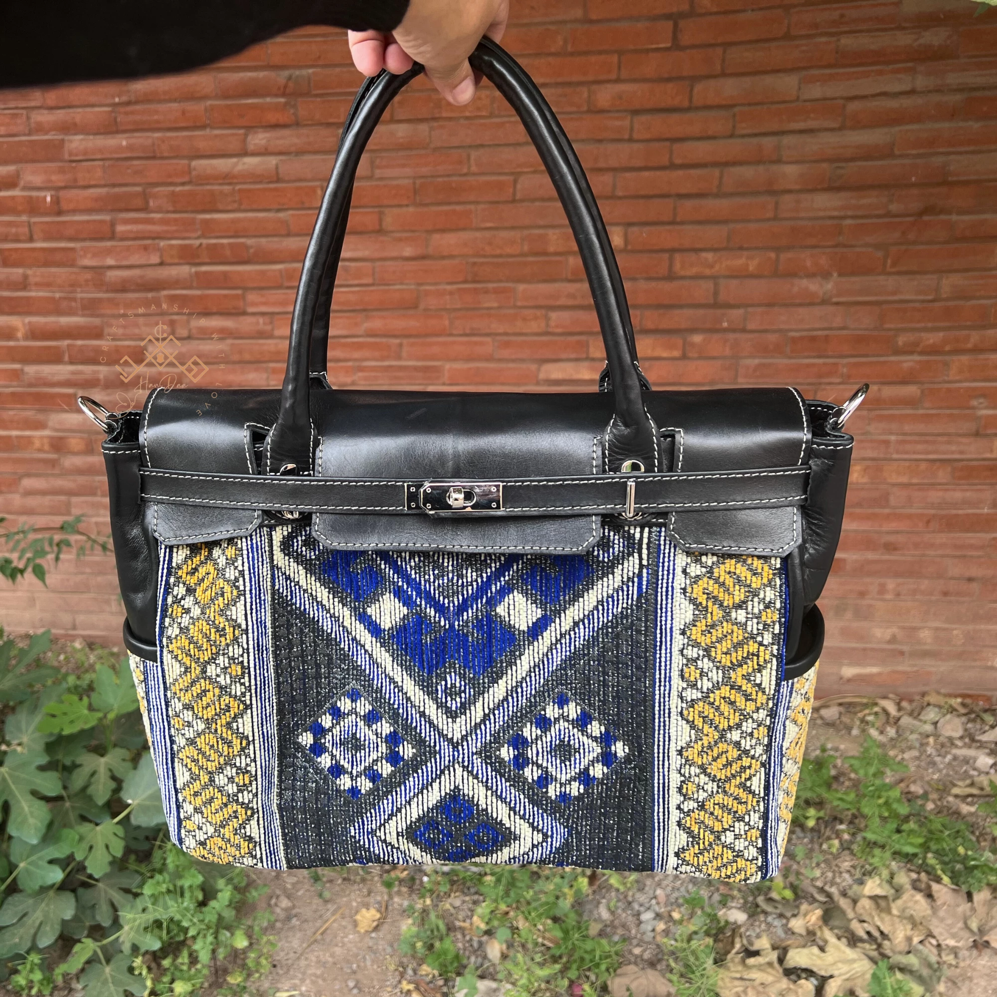 Black Leather & Blue Kilim Handbag – Unique Carpet Tote bags