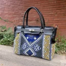 Black Leather & Blue Kilim Handbag - Unique Carpet Tote bags