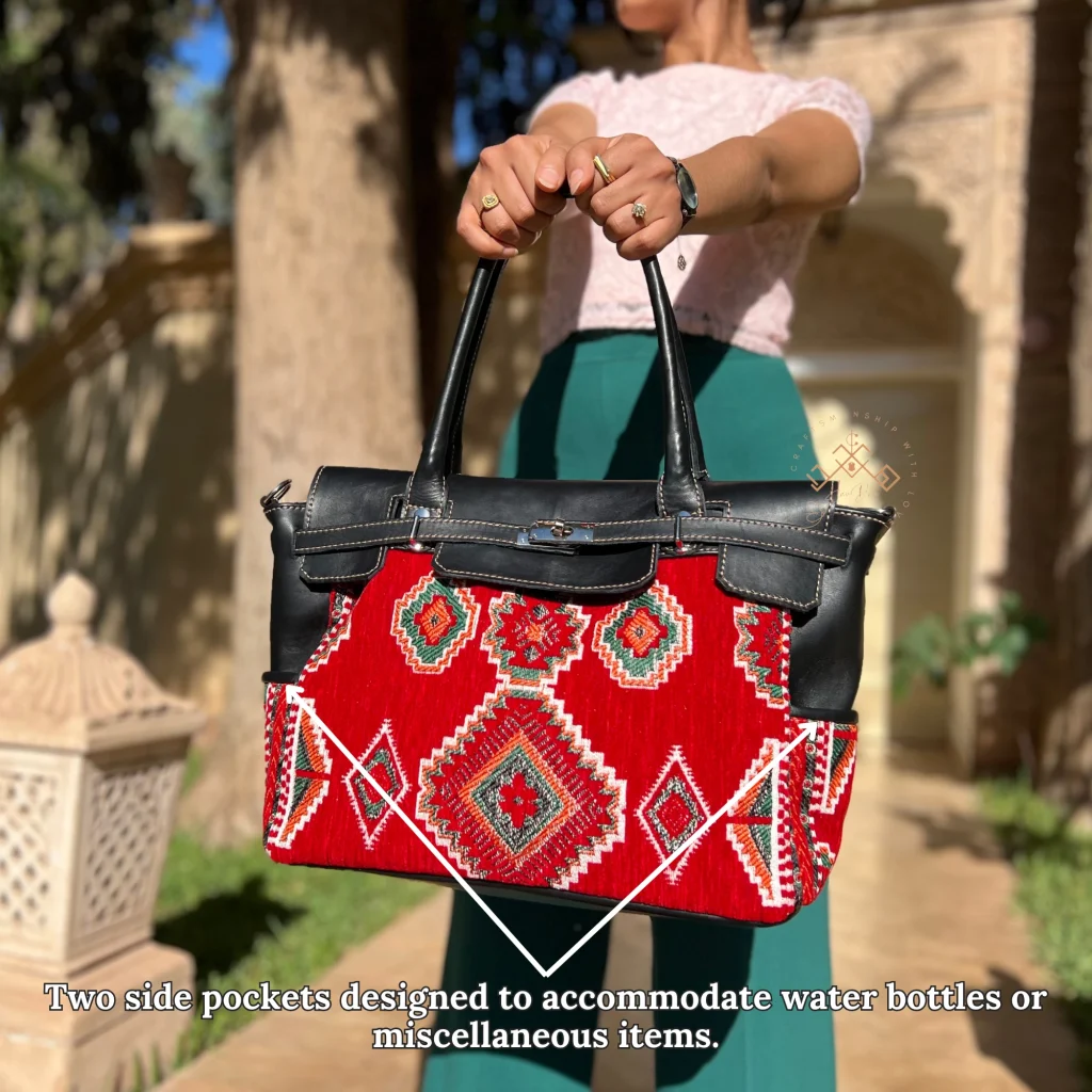 - Handcrafted and designed by Moroccan artisans with soft natural leather.