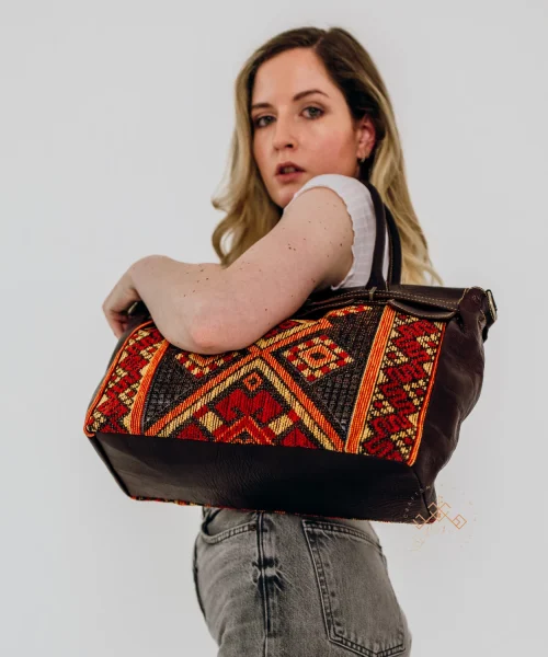 This classy roll-top leather backpack handcrafted with authentic Moroccan kilim and full-grain leather. Stylish, lightweight, and perfect for everyday use or travel. Each piece is one-of-a-kind — a true blend of tradition and boho elegance.