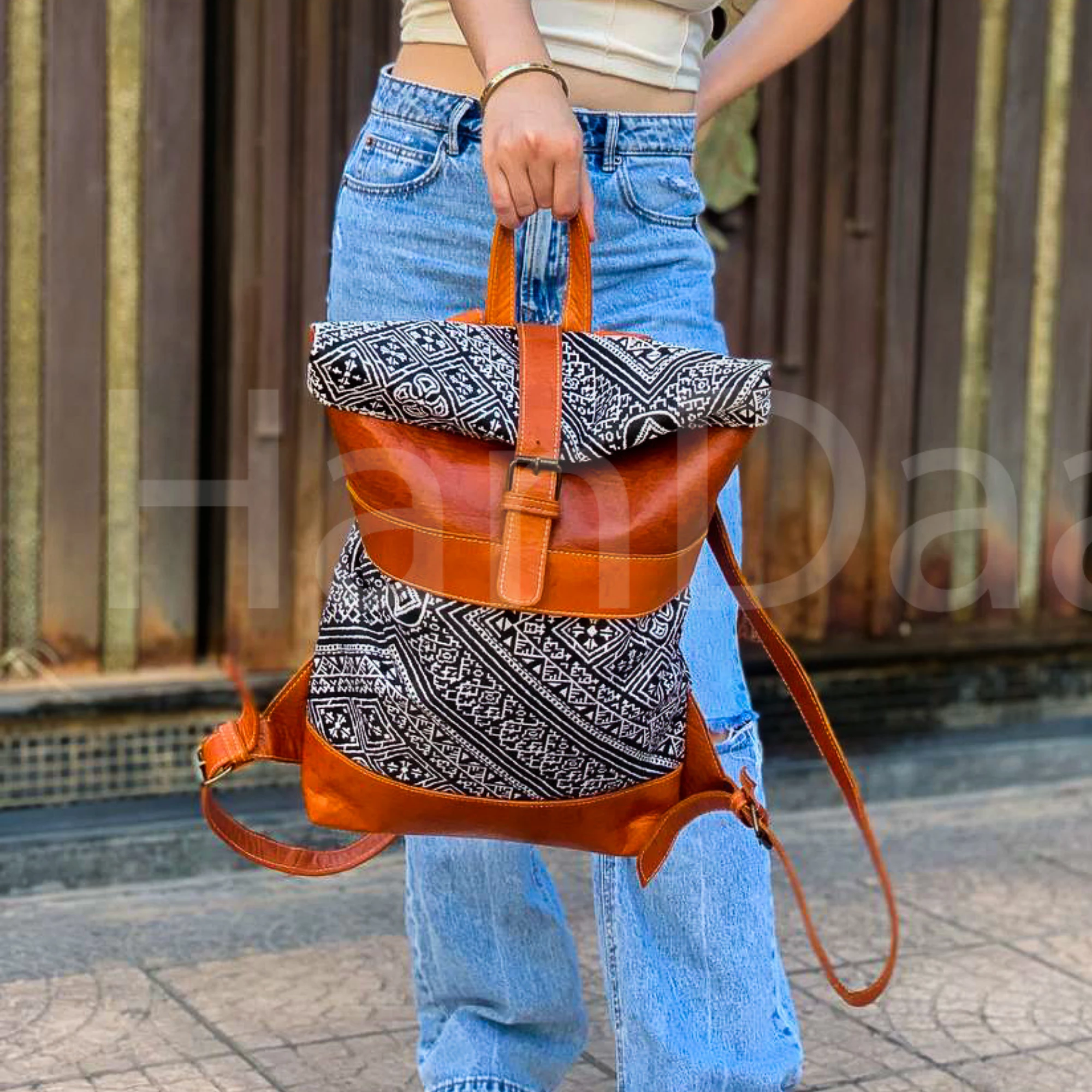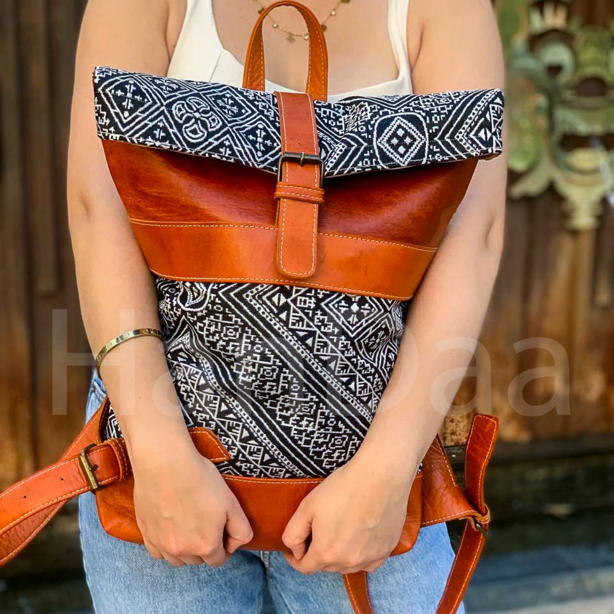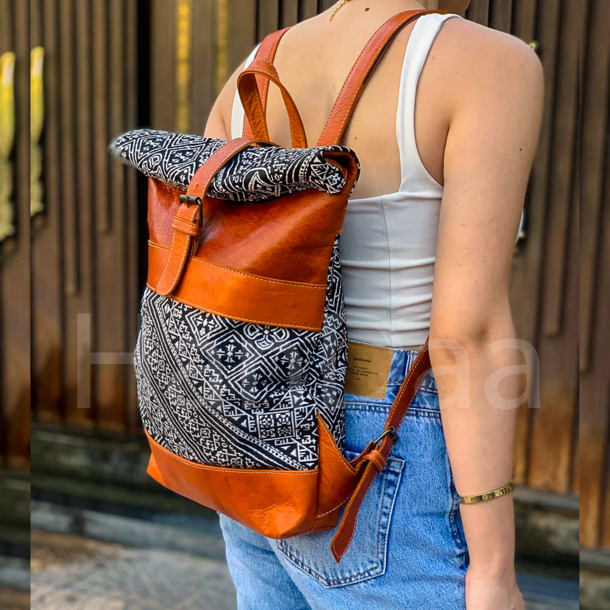 Havan Leather Roll Top Backpack – Unique Kilim Travel Bag