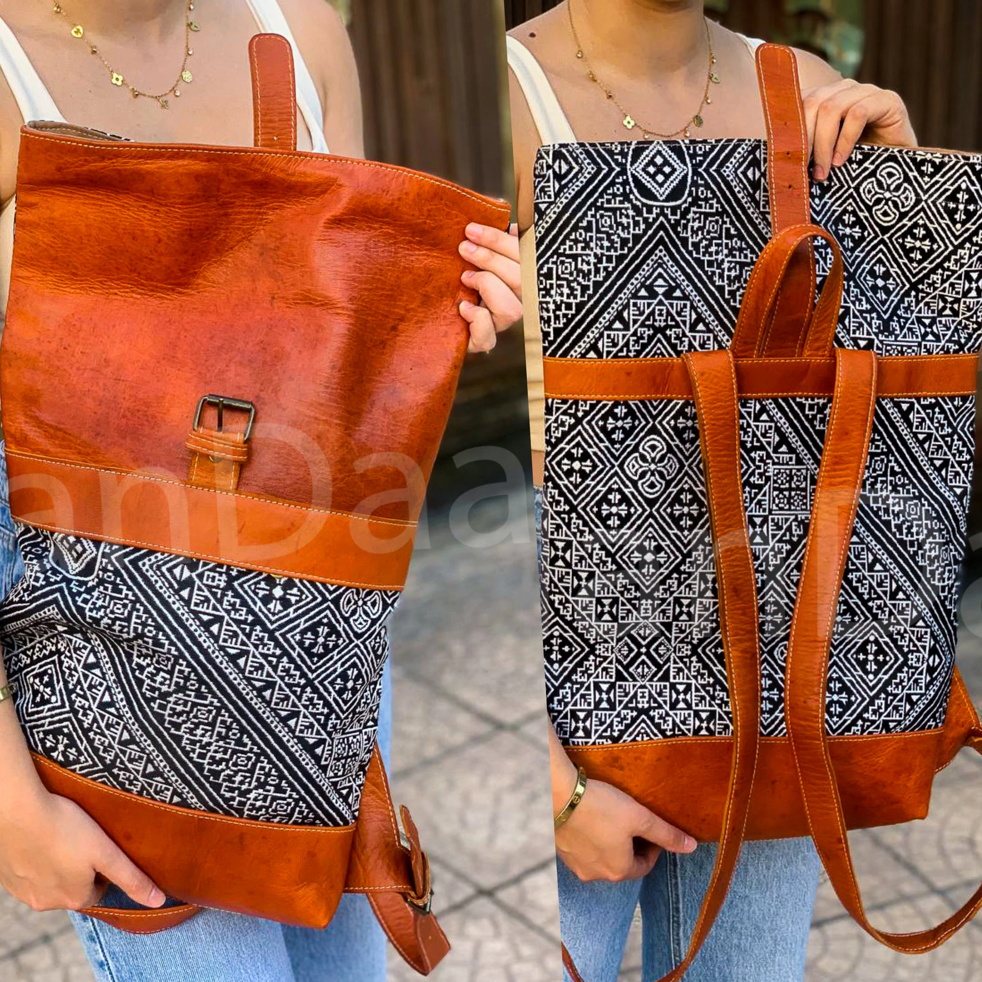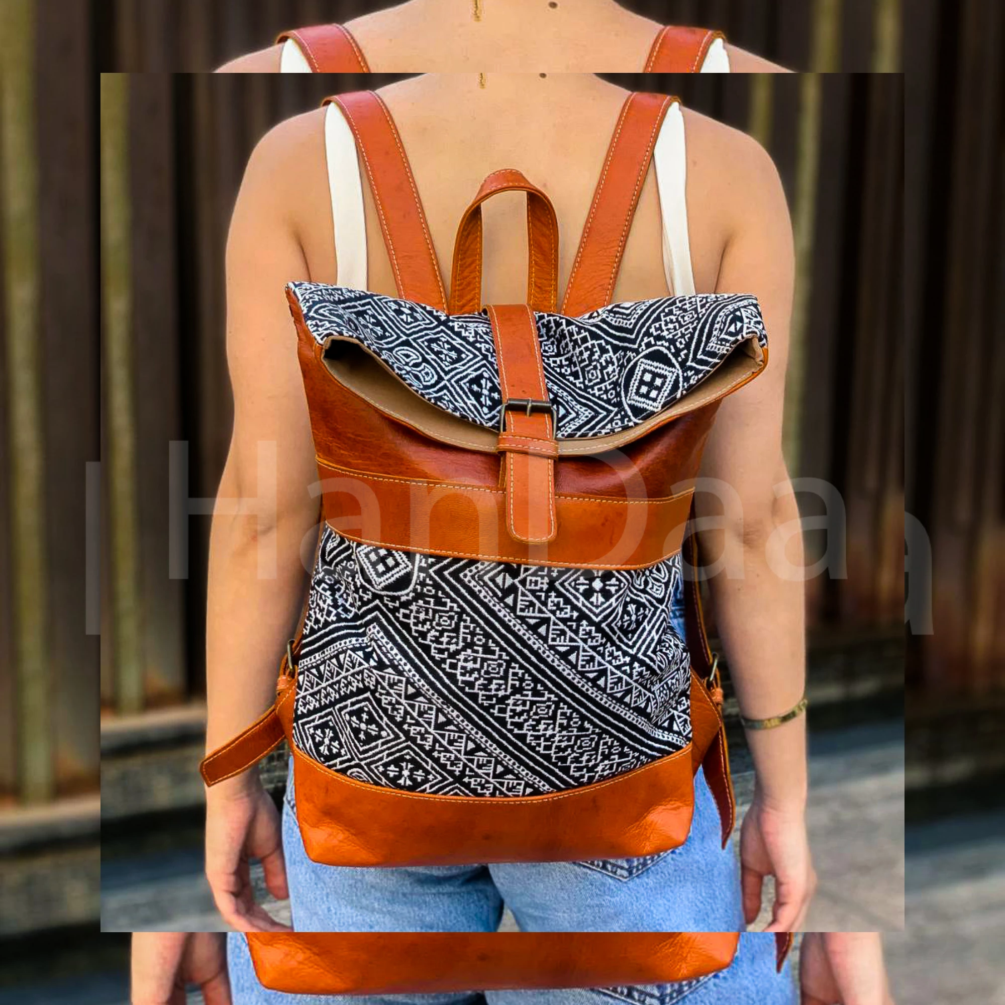 This classy roll-top leather backpack handcrafted with authentic Moroccan kilim and full-grain leather. Stylish, lightweight, and perfect for everyday use or travel. Each piece is one-of-a-kind — a true blend of tradition and boho elegance.