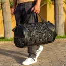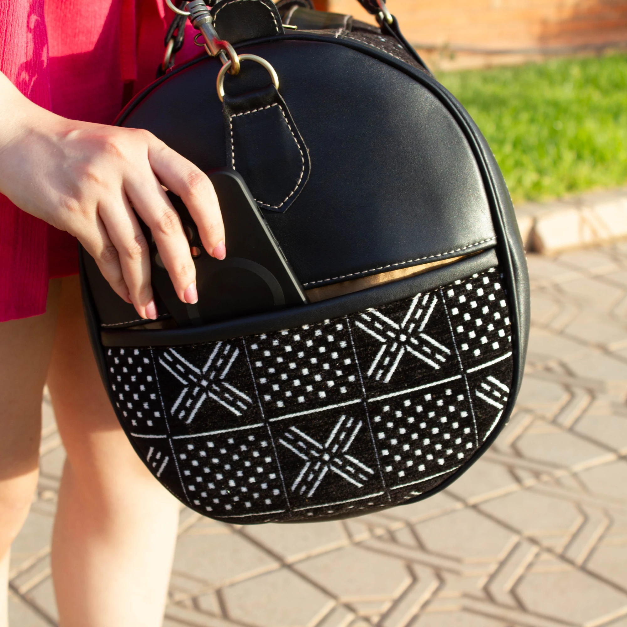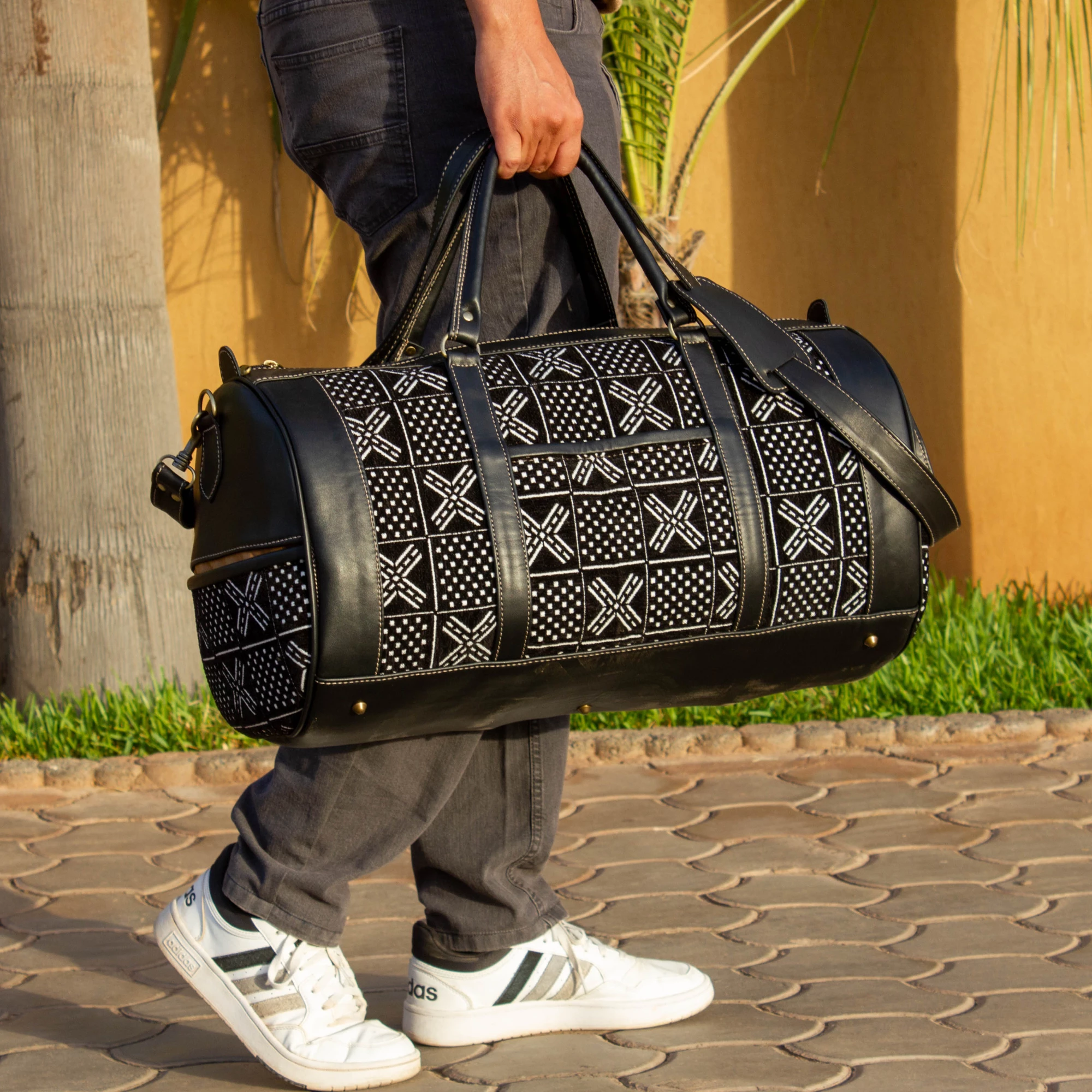 Large Black Leather Kilim Weekender Bag – Moroccan Travel Duffel