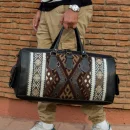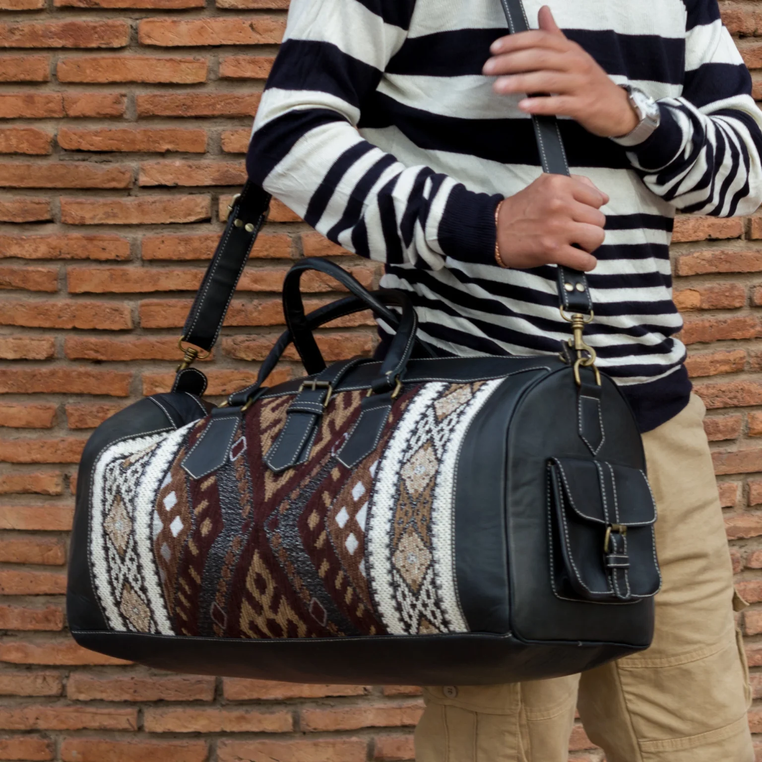 Large Black Leather Travel Bag – Brown Kilim Weekender Duffel