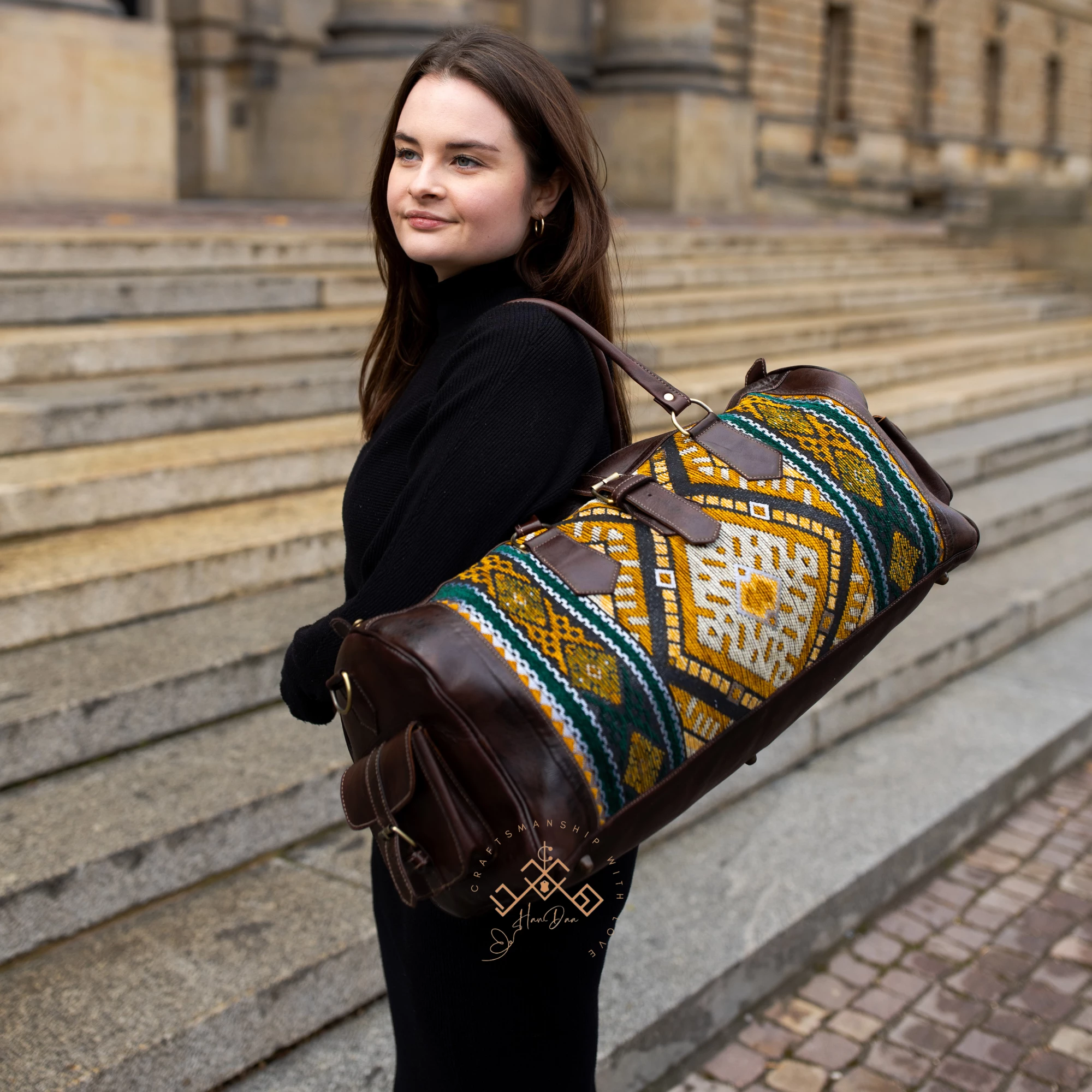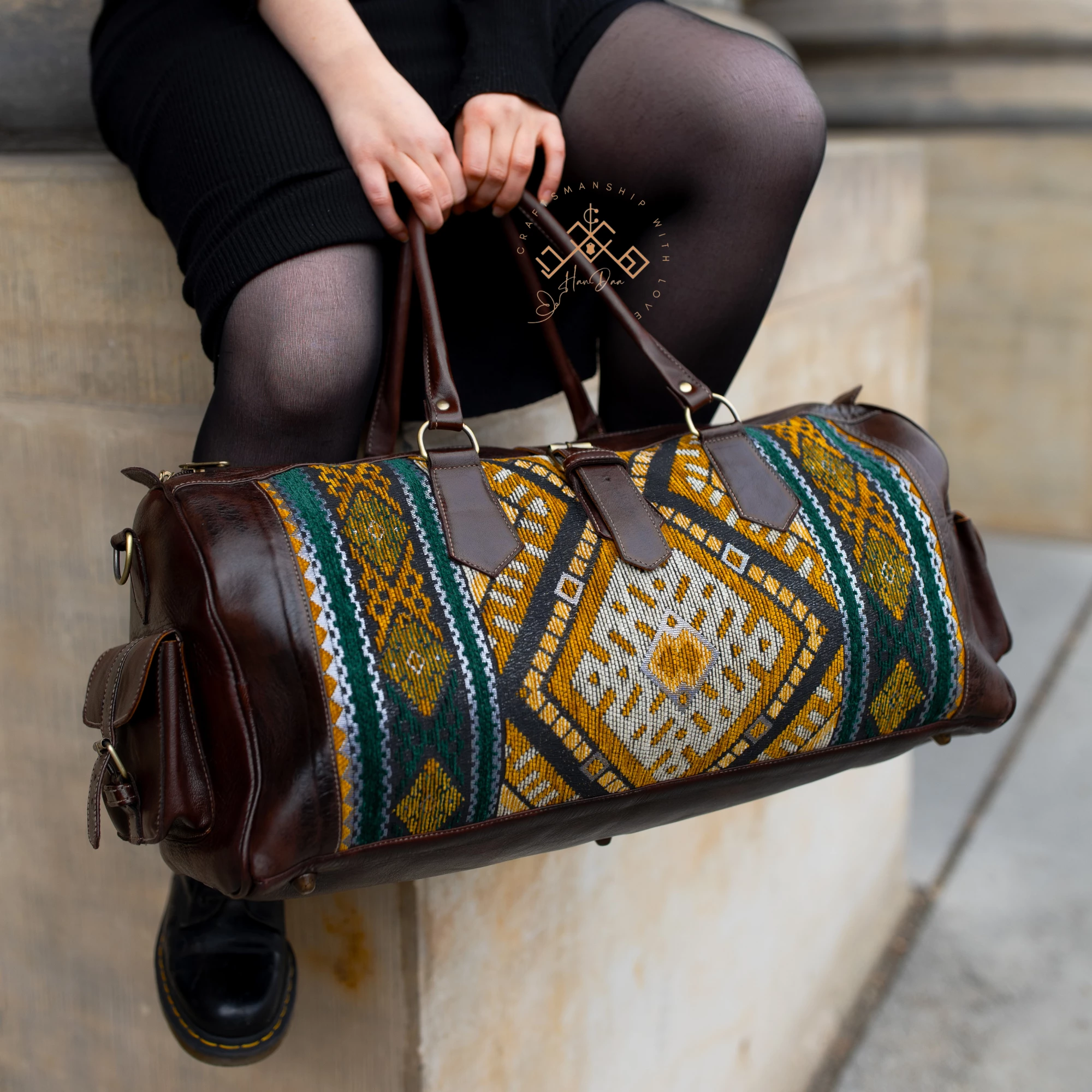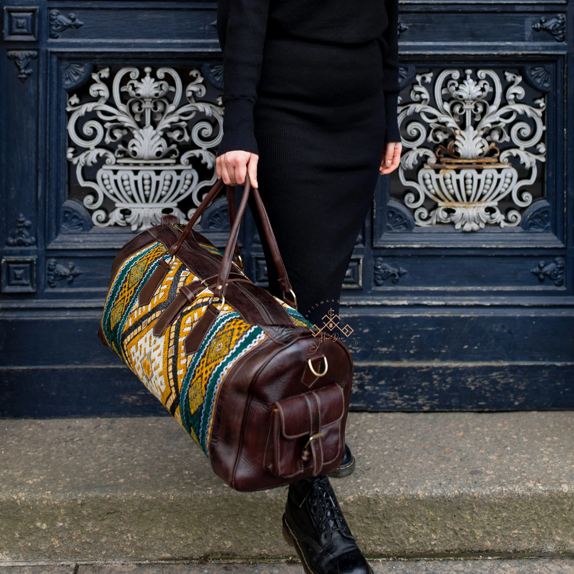 Large kilim Travel leather Bag – Green Kilim Weekender Duffel