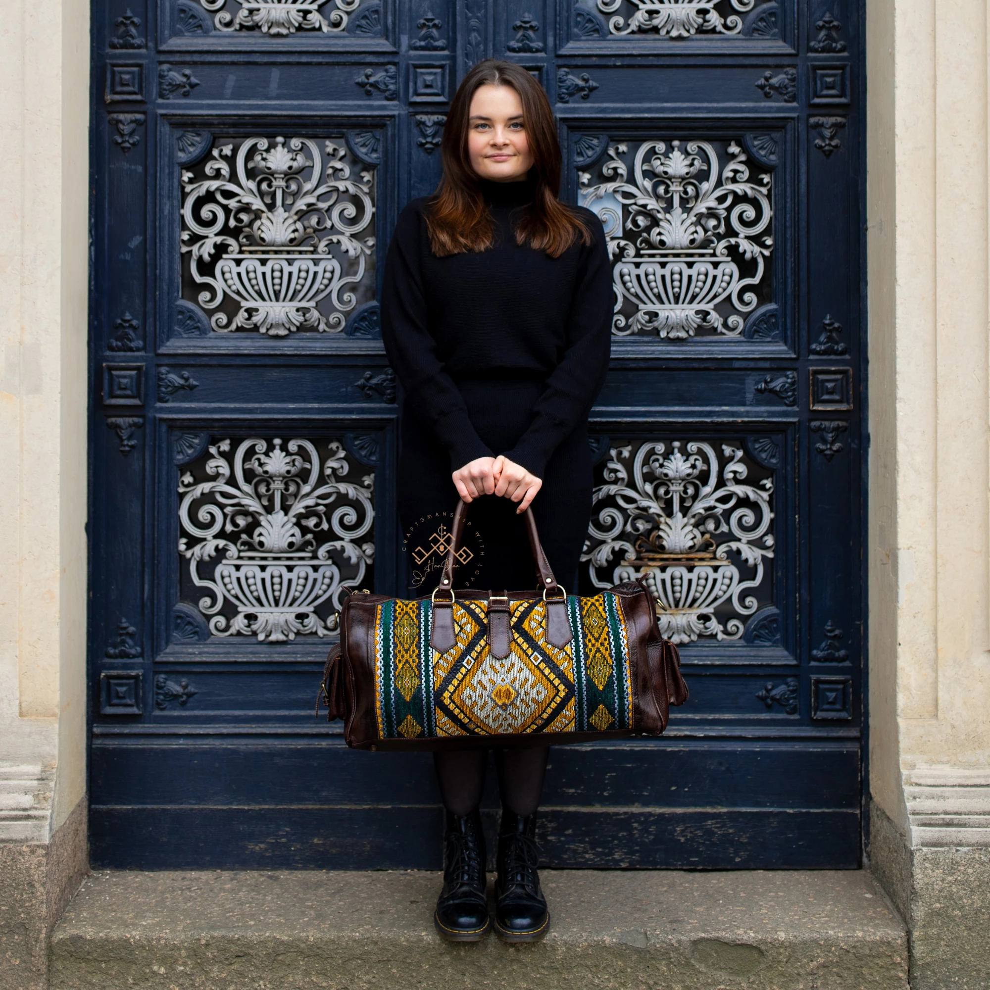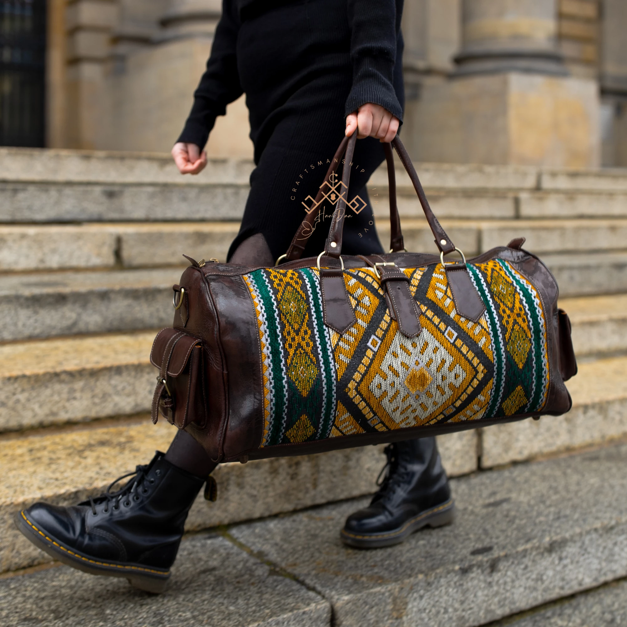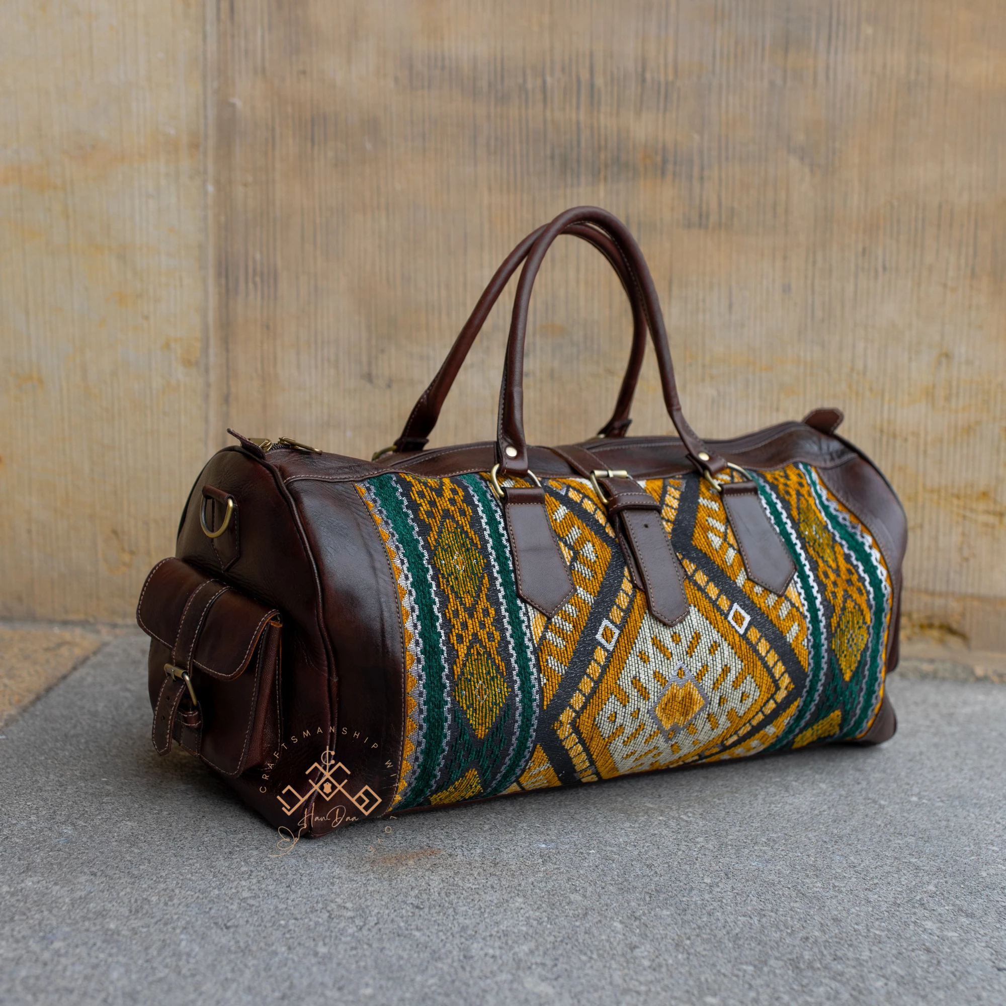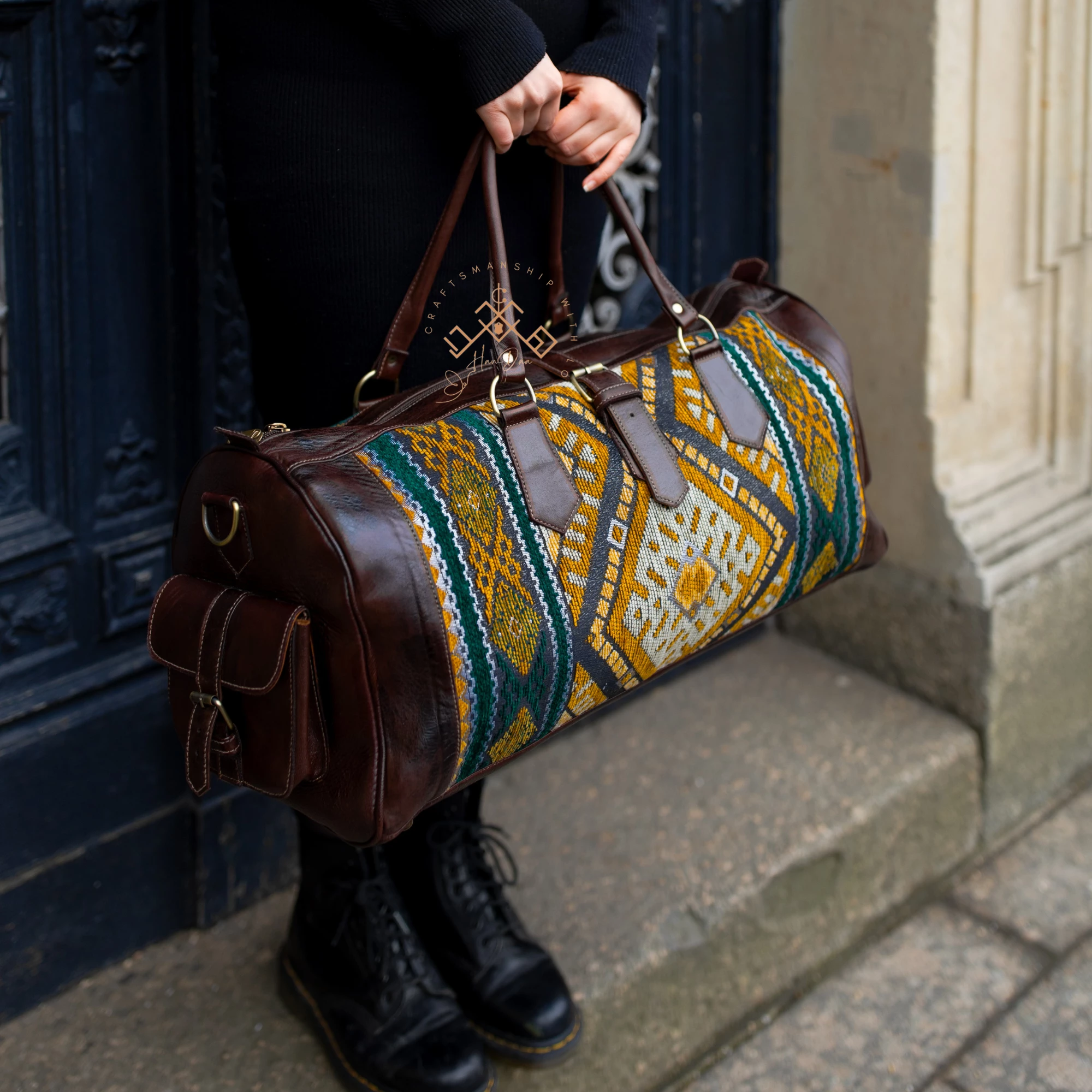 Large kilim Travel leather Bag – Green Kilim Weekender Duffel