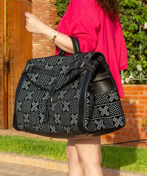 Handmade Moroccan Kilim Leather Duffel – Vintage Style Travel Bag